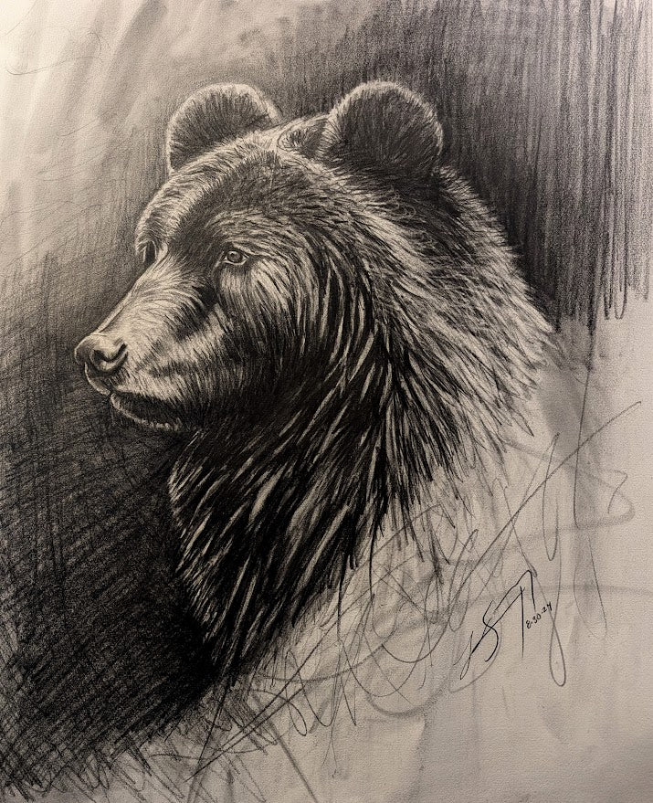 This pencil drawing, 30x22, speaks of not just of a bear, but the bearing of life. We bear each other's burdens; we bear witness, we bear the word, we bear fruit, we bear arms, we bear gifts, we bear vessels of the Lord, we bear the weight of glory, we bear the image of God. We can also choose to bear our own sin, guilt, iniquity, or shame. However, the sin-bearing Servant Messiah, Jesus Christ, the Son of God, has provided a way for us to give Him the heaviness of our bearing, and He takes the weight of our heavy burden by the blood of the cross, freeing us from this weight ( Isaiah 53), for love bears all things 1 Corinthians 13:7.
